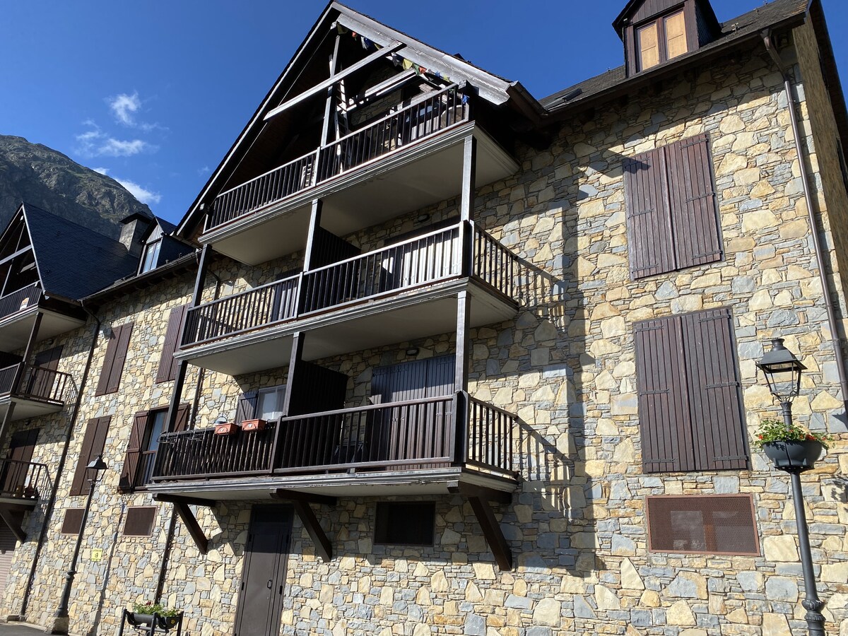 Apto nuevo en planta baja en la zona más tranquila de Benasque y a 1 minuto del centro comercial, cercano a supermercados, bancos, bares, tiendas y paradas de autobuses. Con lugar para recarga de coches eléctricos. Con una enorme terraza privativa de 45m2, cocina totalmente amueblada y WiFi gratuito. Aparcamiento gratuito grande y cómodo y trastero para dejar bicicletas y material de esquí. Con vistas a la montaña. Terraza amueblada con sofas, mesas y sombrilla, para su disfrute.