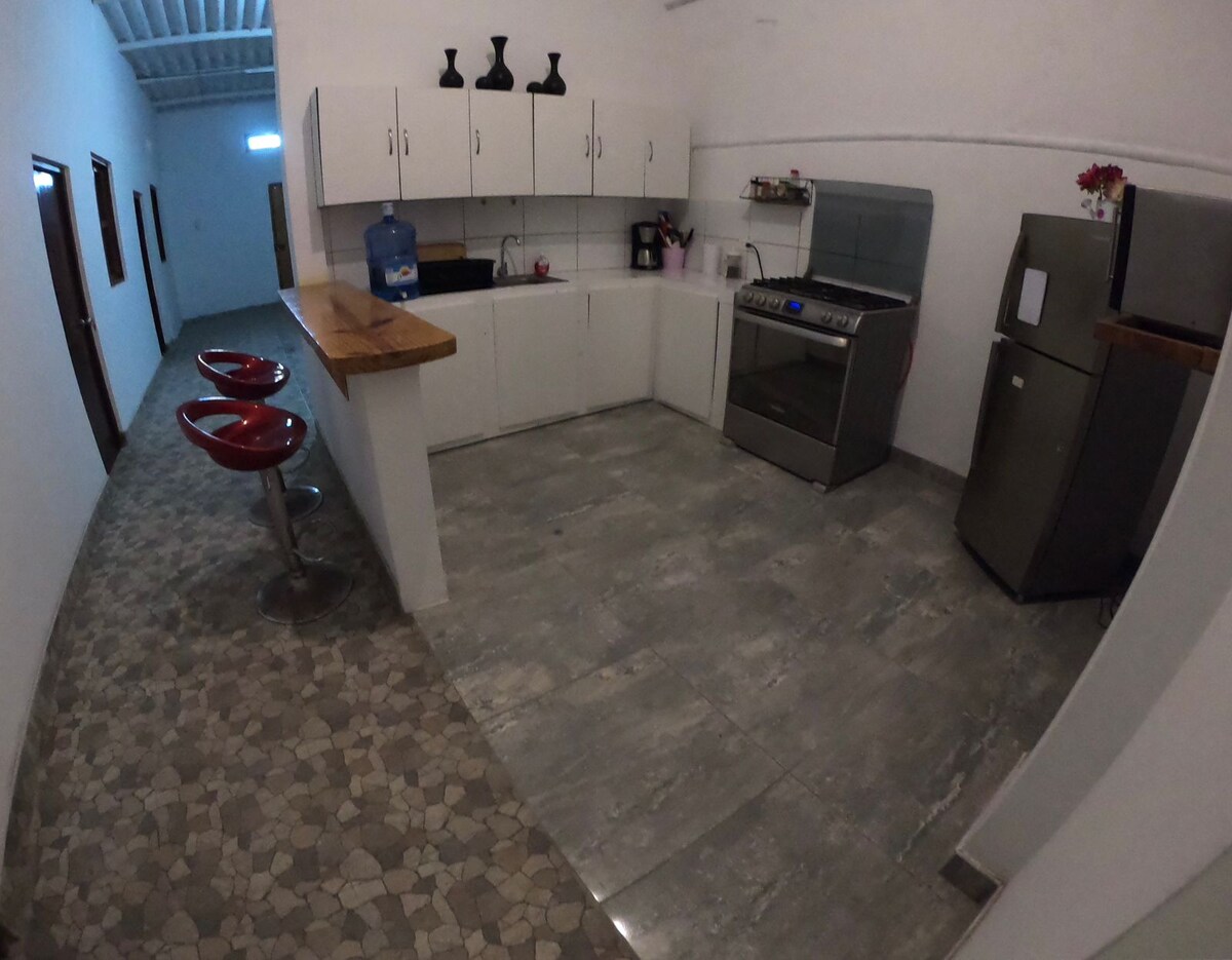 Somos una casa nueva!! ubicados en segunda fila en Las zona de Las Pocitas, Mancora bajo el concepto de barefoot luxury. La casa tiene un dormitorio con una cama king en el primer piso y un altillo con dos camas de plaza y media, baño con ducha al aire libre, cocina, piscina, terraza, area de fogata y area de hamacas. Contamos con una salida privada a la playa a 300 metros de distancia. Somos pet friendly y en la propiedad también vive una gatita llamada tigrita.