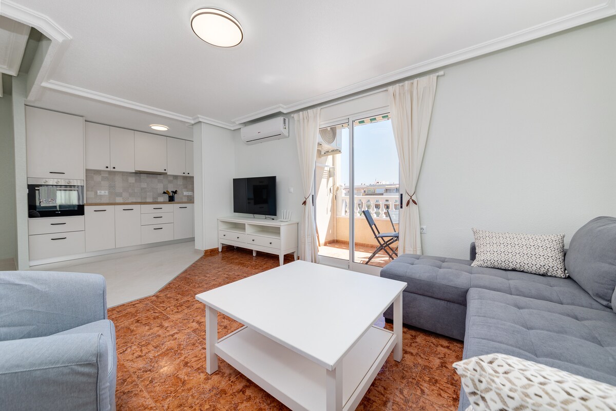 ¡Bienvenido a nuestro hermoso apartamento a 1 minuto a pie de la mejor playa de Torrevieja, Los Locos! Supermercado Consumo 6 minutos a pie. Este cómodo apartamento es ideal para parejas y familias que buscan unas vacaciones en la playa en el soleado sur de España. Fantástica ubicación con acceso a las piscinas naturales de Torrevieja. Hay muchos restaurantes, bares y tiendas cerca, por lo que siempre tendrás algo que hacer.