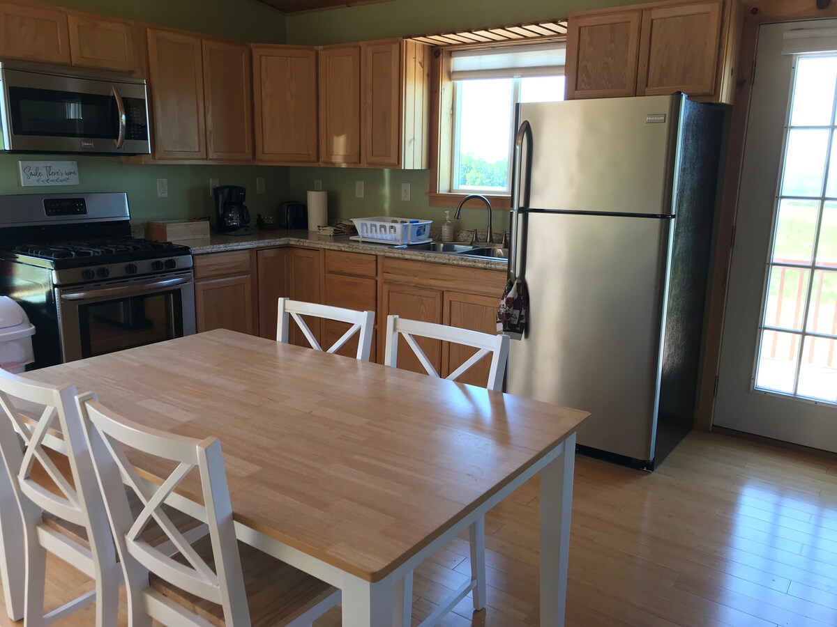 Fox Den is a fully furnished 600 sq ft studio loft apartment with all the amenities that you could need. Eat out or cook in our kitchenette. The view from your 2nd floor deck is stunning with sunsets that dreams are made of. The loft has high, open ceilings that give you a cottage feel that immediately brings relaxing vibes. Hike our 10 acres of trails next door on our glamping grounds, including a fishing pond Your secluded spot is right in the middle of wine country and state Forest trails
