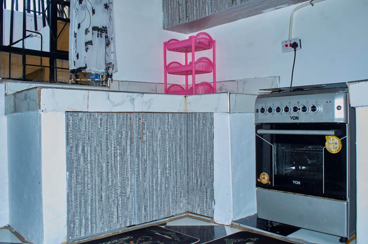 A quiet humble place to, relax & wind up. There is free WiFi, Ample parking,good secirity, running water is available, we experienced water shotage for afew months about a years ago, however, that was permanent resolved. The listing is not far from town CBD, its accessible by foot(50minutes walk) motorbike(8minutes)which costs only Ksh 100, and by taxi it's Ksh 500. we have ajoint for socialising 500M away and two 5star hotels with swimming pool for cooling less than 1KM away. welcome all