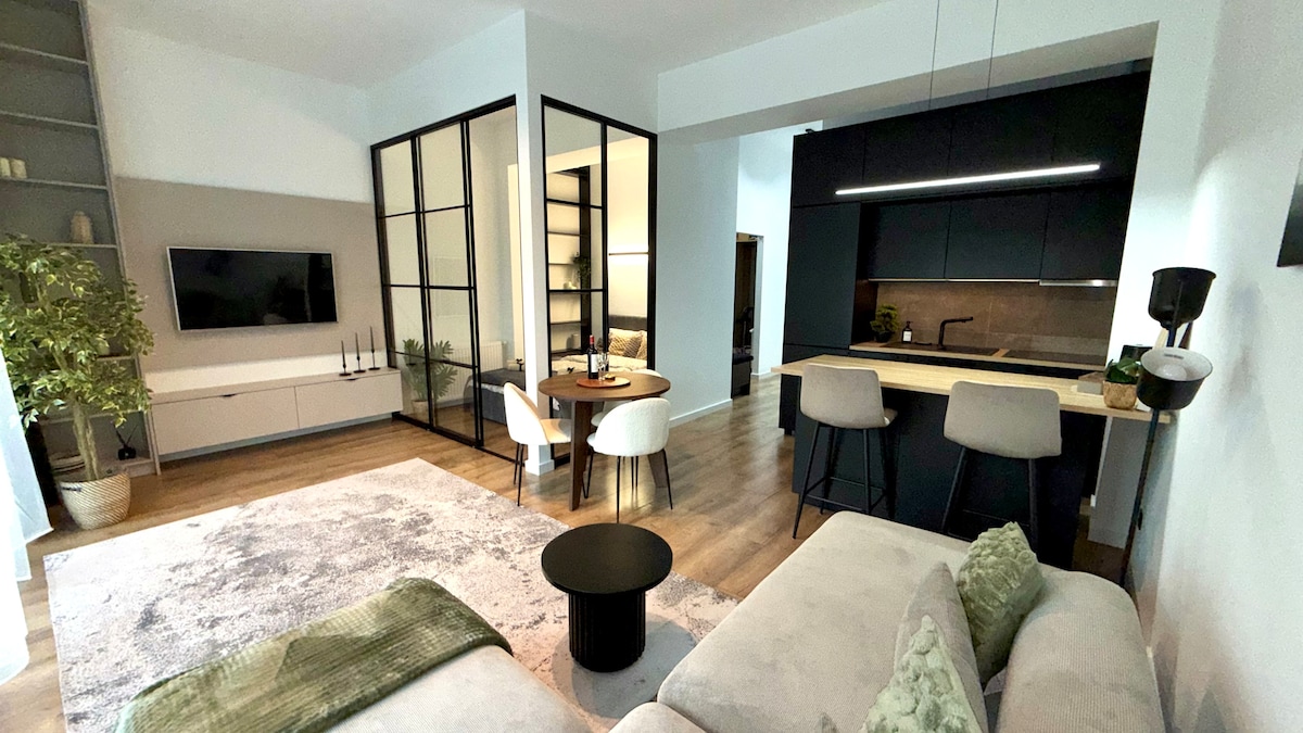 ENG below / Este apartamento es una mezcla de sofisticación y diseño contemporáneo / Aparcamiento subterráneo gratuito / Feel of a hotel, convenience of an airbnb / El apartamento está equipado para cualquier circunstancia cotidiana, para satisfacer las necesidades de los huéspedes que llegan incluso para largas visitas. Si es necesario, un cómodo sofá cama ofrece espacio adicional para dormir. El espacio funcional y sobrio favorece la concentración durante un viaje de negocios, así como la relajación cuando el sol se pone sobre la ciudad.