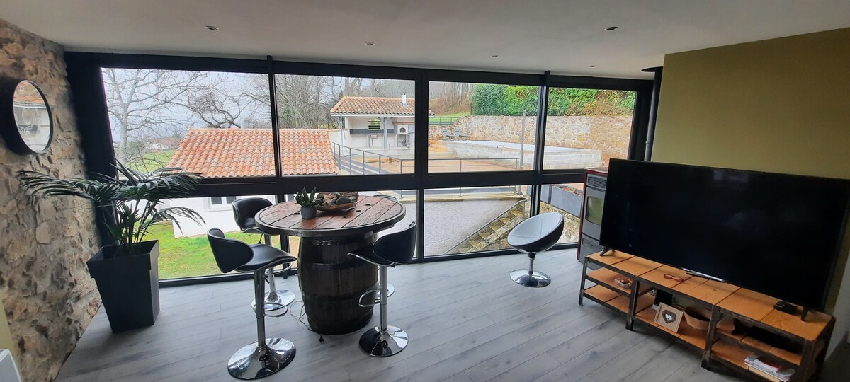 Logements indépendants avec terrasse et PISCINE PRIVÉE 11 M par 5M couverte et chauffée ! JACUZZI HOTSPRING . Billard, baby-foot Ping -pong sous porche, pétanque, BRASERO Situé à 1 h de Lyon 10 min de la gare sncf de Roanne. A89 1 h LYON 1h15 Clermont-Ferrand A77 PARIS /Roanne. A 2 pas de la voie verte et de la gravière aux oiseaux. Pêche. Vélo, Piste ULM, restaurants étoilés. A 5 min de Roanne et du centre commercial. Environnement campagne. Draps, serviettes et ménage inclus.