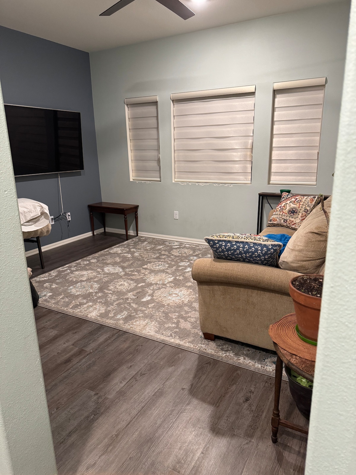 Emocionado de compartir nuestro estudio nuevo y elegante de 2025 equipado con una cama tamaño queen, baño completo, cocina completa, TV inteligente, comedor y área de trabajo, sobre todo tiene una entrada privada para uno o dos huéspedes en un vecindario naranja muy tranquilo, seguro y bien ubicado de Riverside, ca.