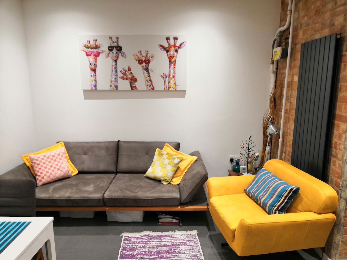 Small self contained Studio room on the ground floor of our contemporary timber-framed house. This unique street facing space has a large rear facing internal window looking into a shared work studio (there is a curtain). We are Located near buzzing cafes, galleries, parks, and landmarks, it’s well-connected to central London via nearby transport. A welcoming family live-workspace offering a comfortable and inspiring base to explore the city.