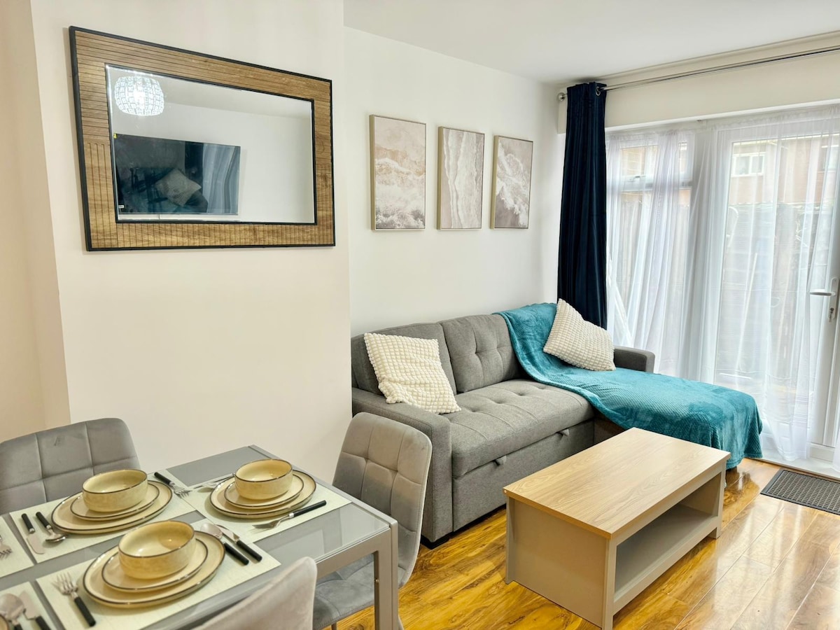 ¡Te damos la bienvenida a tu hogar lejos de casa! Nuestra moderna casa de 2 dormitorios se encuentra a solo unos minutos a pie de Elephant and Castle Station, con conexiones rápidas con el centro de Londres. Disfruta de una cocina totalmente equipada, un cómodo espacio habitable, WiFi rápido y espacio en el jardín. Perfecto para profesionales, contratistas o estadías más largas. Estacionamiento diario disponible a un costo fijo. Tiendas y cafés cercanos. Descuentos disponibles para reservaciones semanales o mensuales. Tiene capacidad para 5 personas. ¡Comodidad y comodidad en un solo lugar!