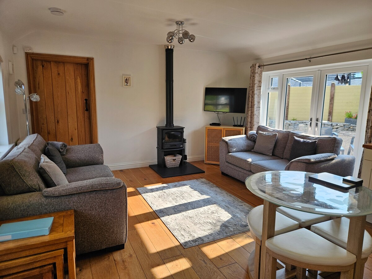 Departamento Stargazers, una de las dos casas en un camino privado. Una ubicación tranquila y pintoresca. No hay ruido ni contaminación lumínica y los cielos más oscuros de Europa. Disfruta de todo el último piso con salón/cocina de planta abierta y librerías históricas. Dormitorio con bañera de superficie móvil, cama tamaño king, baño privado. ¡Es un espacio fabuloso! Entrada independiente a través de un hermoso atrio de vidrio con vistas increíbles. Terraza privada para observar las estrellas y telescopio Máximo 2 huéspedes Jardín compartido. Se consideran mascotas, pregunta primero.