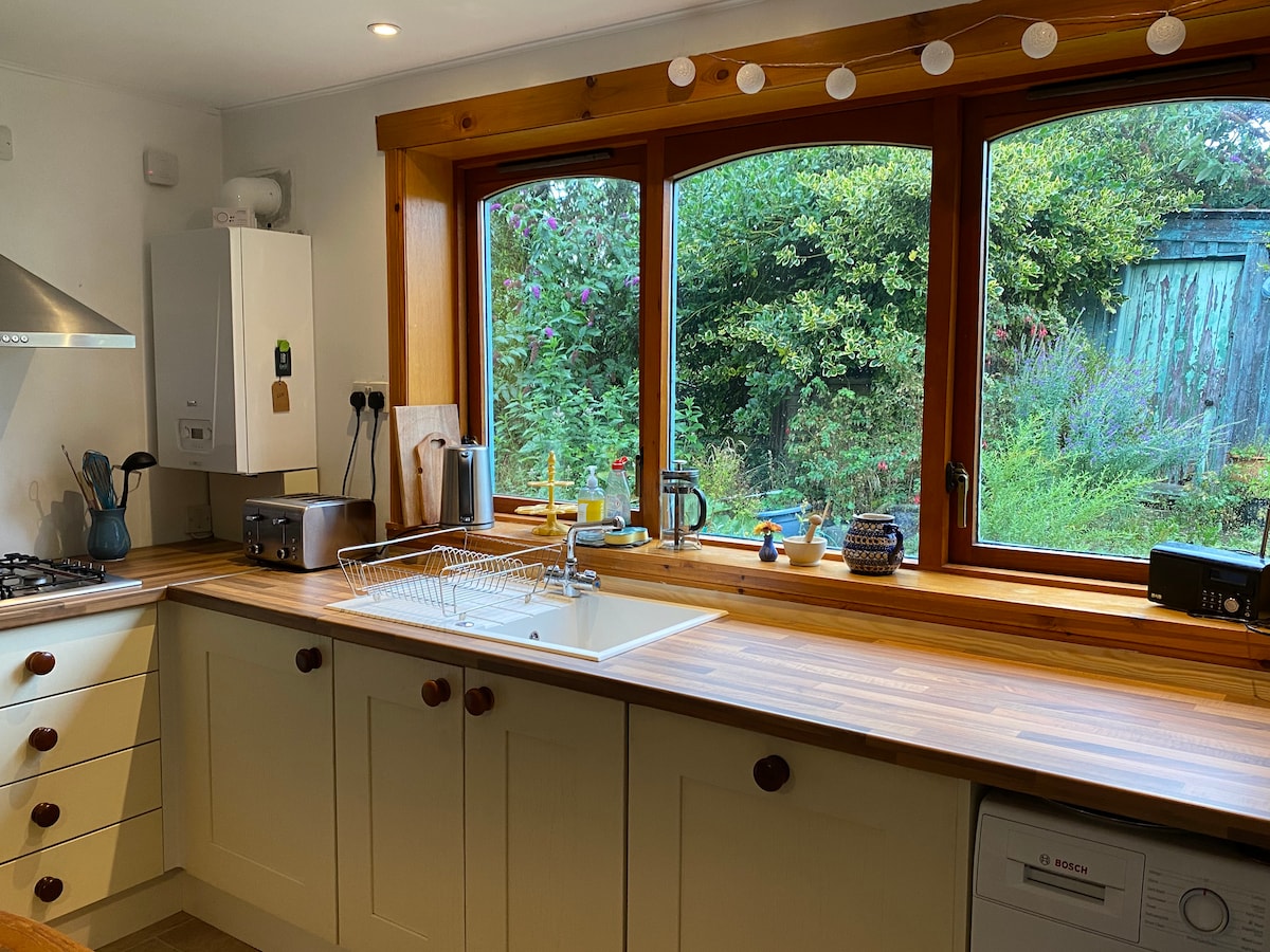 Una casa de campo tranquila con terraza en Huntly, fuera de las calles principales, pero a poca distancia a pie de la estación de tren y del centro de la ciudad. La acogedora sala de estar está equipada con una eficiente estufa de leña y encontrarás una cesta de leña a tu llegada. La cocina está situada en la parte trasera del edificio con acceso a un pequeño jardín cerrado perfecto para un desayuno lento al sol o una bebida nocturna en el césped. El baño es accesible a través de una escalera arriba. ¡Estamos deseando recibirte!