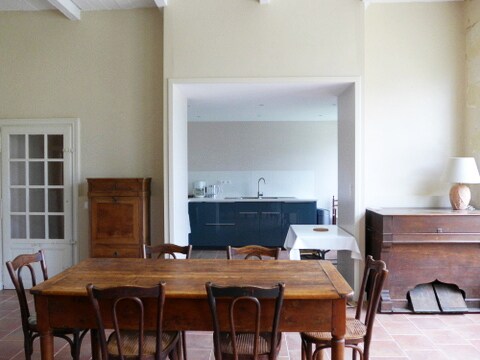 En una antigua escuela, hemos instalado un loft en el corazón de Saumur. Con vistas a un patio arbolado, podrá disfrutar de 3 dormitorios (2 dormitorios para adultos y 1 dormitorio para 4 niños), una gran sala de estar y un baño. También tendrá acceso a un aula contigua en la que hemos creado una piscina cubierta de 3 m x 3 m, climatizada con nado a contracorriente. Tendrá la opción de aparcar 2 vehículos en el patio.