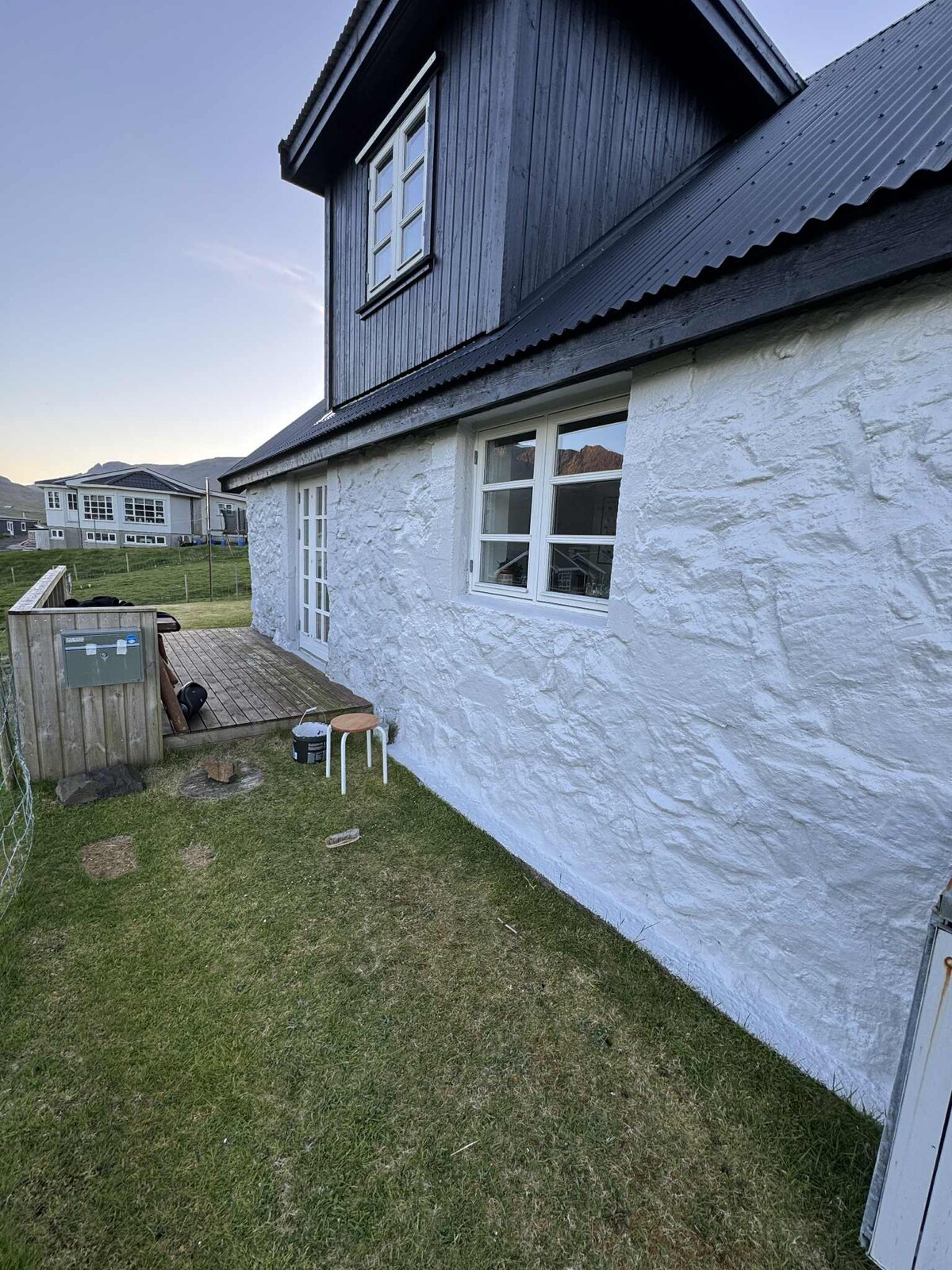 La casa está en un pueblo tranquilo llamado Akrar en la isla Suðuroy (Suderø). Solo hay 13 casas en el pueblo y, por lo tanto, es muy tranquilo y silencioso. La casa está recién reformada y consta de dos plantas y un sótano. Hay aproximadamente 7 kilómetros a la ciudad más cercana, llamada Vágur.