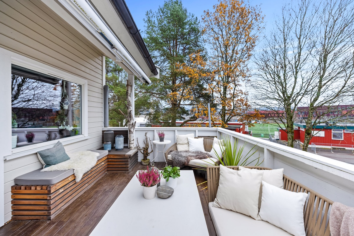 Situado entre el aeropuerto de Oslo y el centro de Oslo. Casa de 3 pisos (120 m²), 3 dormitorios + área de descanso adicional con 2 sofás cama, gran terraza de 80 m², jardín de invierno, parrilla, chimenea, televisores inteligentes grandes y una moderna cocina equipada. Un baño completo + inodoro adicional. Ofrece espacio para 8-10 huéspedes. Estación de tren a solo 400 m a pie: A 18 minutos de Oslo Central en tren. A 6 minutos de Lillestrøm. A 30 minutos del aeropuerto de Oslo. A 1 km de SNØ, la arena de nieve cubierta más grande del mundo. A 4 km del hospital Oslo Akershus.