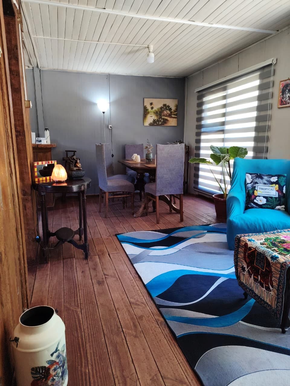 Pequeña cabaña familiar (45mt) en parcela , completamente independiente, 2 dormitorios, 2 baños, estar-comedor, cocina muy equipada para 4 personas. Aire acondicionado y estufa a pellet para calefacción, TV y WiFi. A solo 1 km de la zona urbana, almacén y restaurantes. A 3 km de terminal de buses y supermercado Líder. Muy fácil llegada desde antigua carretera norte-sur o Avenida Las Industrias, principal llegada a la ciudad. Si tu viaje es al norte o al sur, solo te desvía 2 km. de tu ruta.