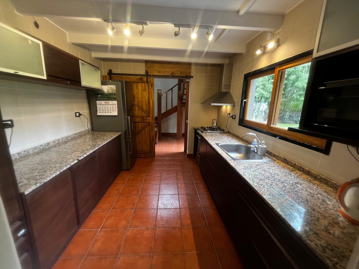 Disfruta de éste espacio con decoración vintage pensado para tener una acogedora estadía. Planta baja: Ambiente amplio con cocina completa, lavarropas, heladera, parrilla interior, baño, sommier de 1 y 1/2 plaza con cama marinera, mesa y sillas de comedor, TV led con crhomecast. Planta alta: Dormitorio Loft con sommier de 2 plazas, escritorio y Smart TV. Patio/Garage delantero y patio trasero pequeño con tobogán (compartido con los dueños). Sillas de camping con parrilla portátil.