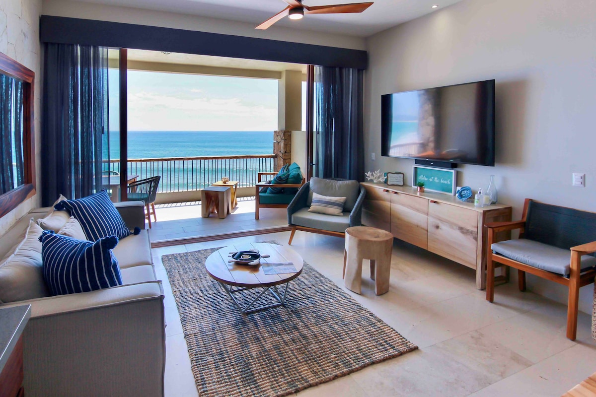 Vistas absolutamente impresionantes, observa las ballenas. Disfruta de una experiencia elegante en este condominio céntrico. A poca distancia de la playa de Medano, cerca del centro de Cabo y de todos los servicios. En el momento en que entres, notarás la atención al detalle. Las amplias vistas al mar desde cada habitación hasta el magnífico arte, queremos que te sientas como si te estuvieras escapando, pero con los lujos del hogar. tenemos sábanas de lujo, no querrás marcharte. Nuestro alojamiento cuenta con un sistema de filtración de agua completo