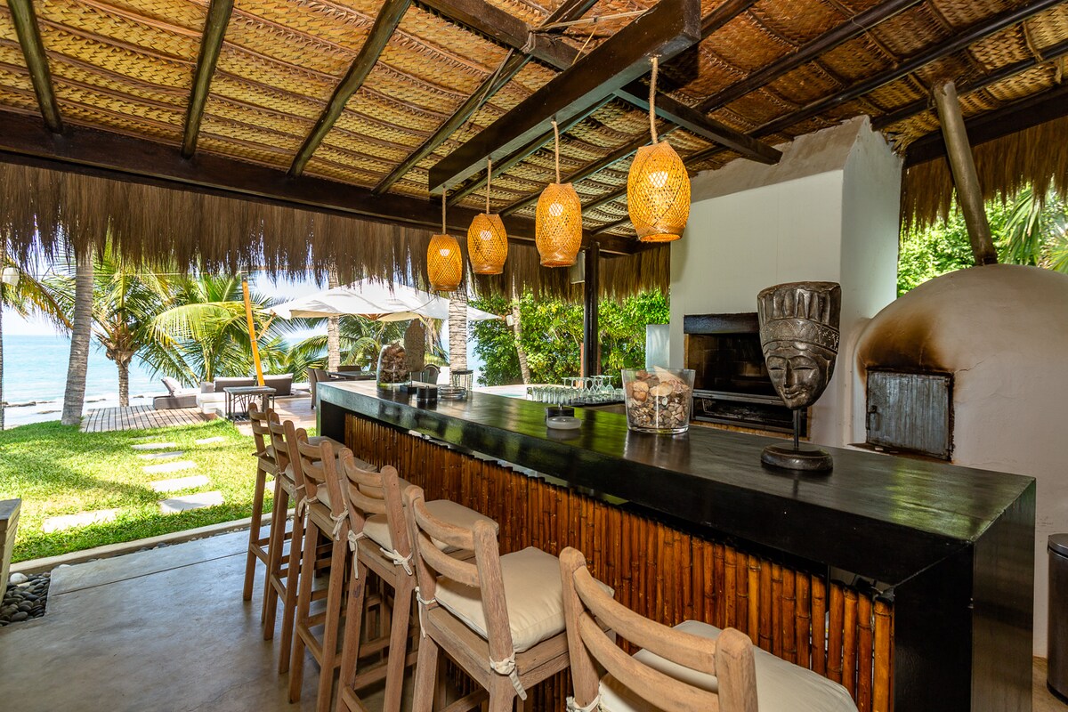 Vacaciones junto al mar rodeados de un amplio jardín tropical lleno de palmeras, en la tranquila zona residencial de Las Pocitas-Máncora. Con tu reserva, te enviaremos opciones de deliciosos menús de platillos locales y otros, que nuestro personal de servicio con gusto preparará. El horno de barro y la parrilla son los favoritos de nuestros huéspedes. No tienes que trabajar, nos encargamos de todo. La casa viene completamente equipada, ¡incluso con Kayak!