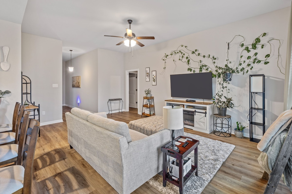 Tu familia o grupo de negocios estará cómodo en este complejo de casas de huéspedes único y divertido. ¡3 dormitorios, cocina de lujo, salón y 2 baños fabulosos! La casa del árbol de 440 pies cuadrados es un edificio separado para descansar. Disfruta de varias zonas de comedor y asientos al aire libre perfectos para el clima templado de Lafayette. ¡Excelente ubicación céntrica! Mira nuestro vídeo en YouTube. Busca «Treehouse Guesthouse Lafayette Louisiana». Tenemos alojamientos adicionales, así que avísanos si necesitas espacio para un grupo más grande.