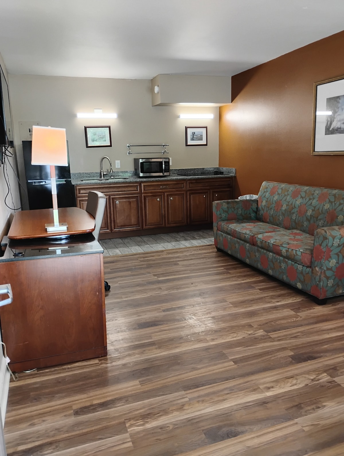 Welcome to Crown Extended Stay Hotel, an American-based property with a long history of serving the community and also operates as Crown Efficiency. Warning, this is an older property we’re actively improving. This property is best suited for transient and construction workers seeking practical, affordable stays. Located in a gated community with free onsite parking. Rooms include full kitchens and courtyard views. No deposit, contract, or background check required. Enjoy your stay!
