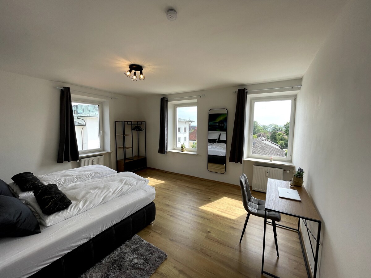 Bienvenido a BONNYSTAY y a este lujoso apartamento de 2 habitaciones en el centro de Passau, que te ofrece todo para una gran estancia corta o larga en Passau: → cómoda cama doble de 160x200. → Súper céntrico, cerca directa del casco antiguo de Passau. Televisión → inteligente y NETFLIX → CAFETERA NESPRESSO → → Lavadora a→ poca distancia a pie de restaurantes, cafés, bares y tiendas.