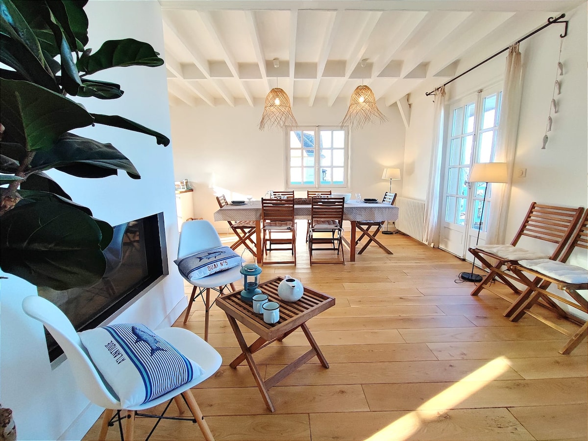 Une maison de pêcheur avec une vraie personnalité. Bois, lumière, volumes… ici, tout invite à ralentir. En plein cœur de Villerville, mais à l’abri dans une impasse, on vit tout à pied sans renoncer au calme. Deux chambres, un espace de vie chaleureux, et là-haut, un coin suspendu avec vue mer. Le genre d’endroit où l’on se sent bien sans vraiment savoir pourquoi… et où l’on reste un peu plus longtemps que prévu.