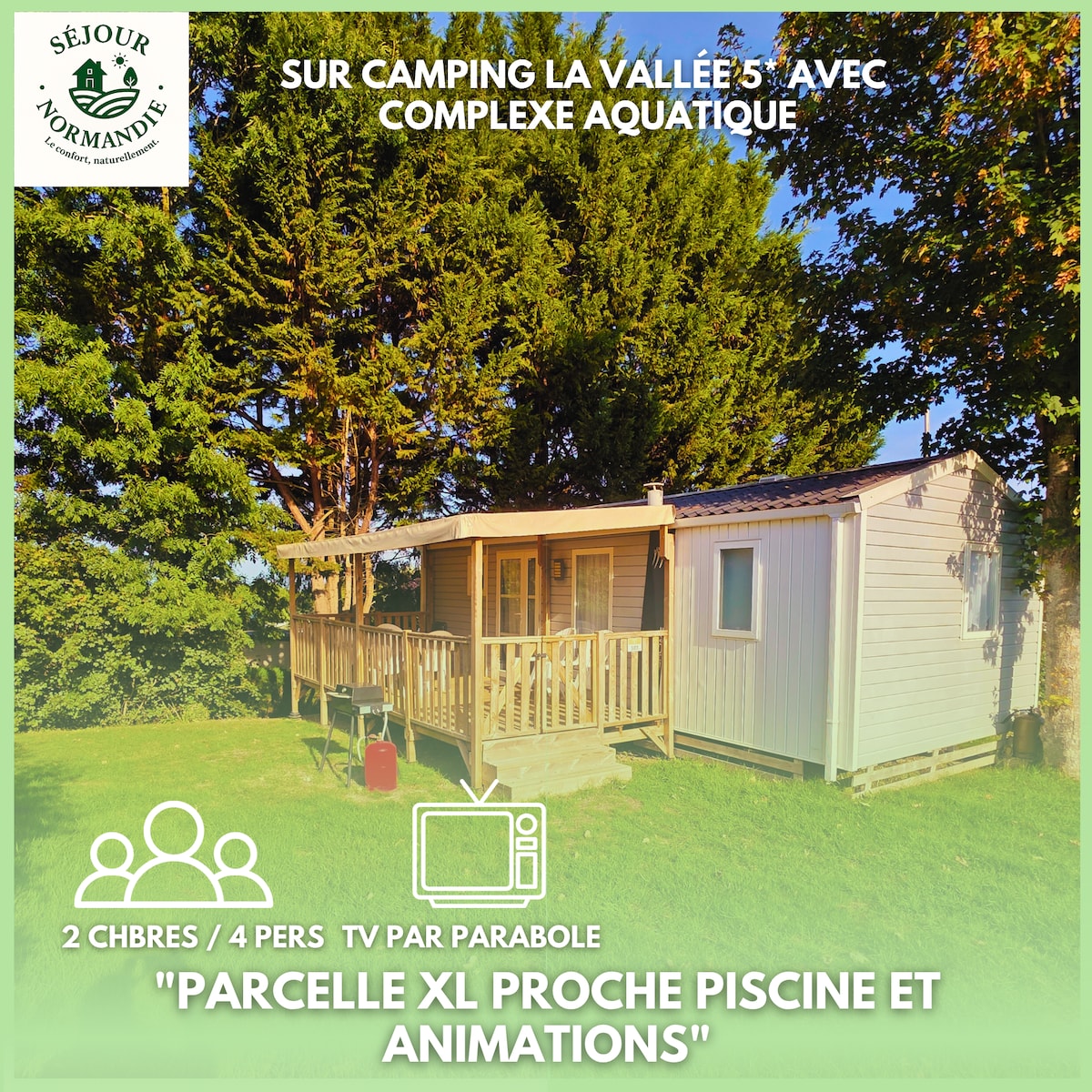 Mobilhome 2022 Piscinas vigiladas climatizadas - abierta a principios de abril. Club infantil (de 1 a 14 años) Fun Pass para acceder a la piscina y club infantil: para comprar en el camping , reservar antes de la llegada restaurante, bar, supermercado lavandería WI-FI en todo el sitio (gratis en el bar ) zonas de juegos terreno multideporte mini granja con animales alquiler de bicicletas bosque de Cerisy y hermosa campiña de los alrededores Las playas del desembarco Bayeux ( ciudad medieval) , Mont Saint Michel a las 1:00 zoológico de Jurques