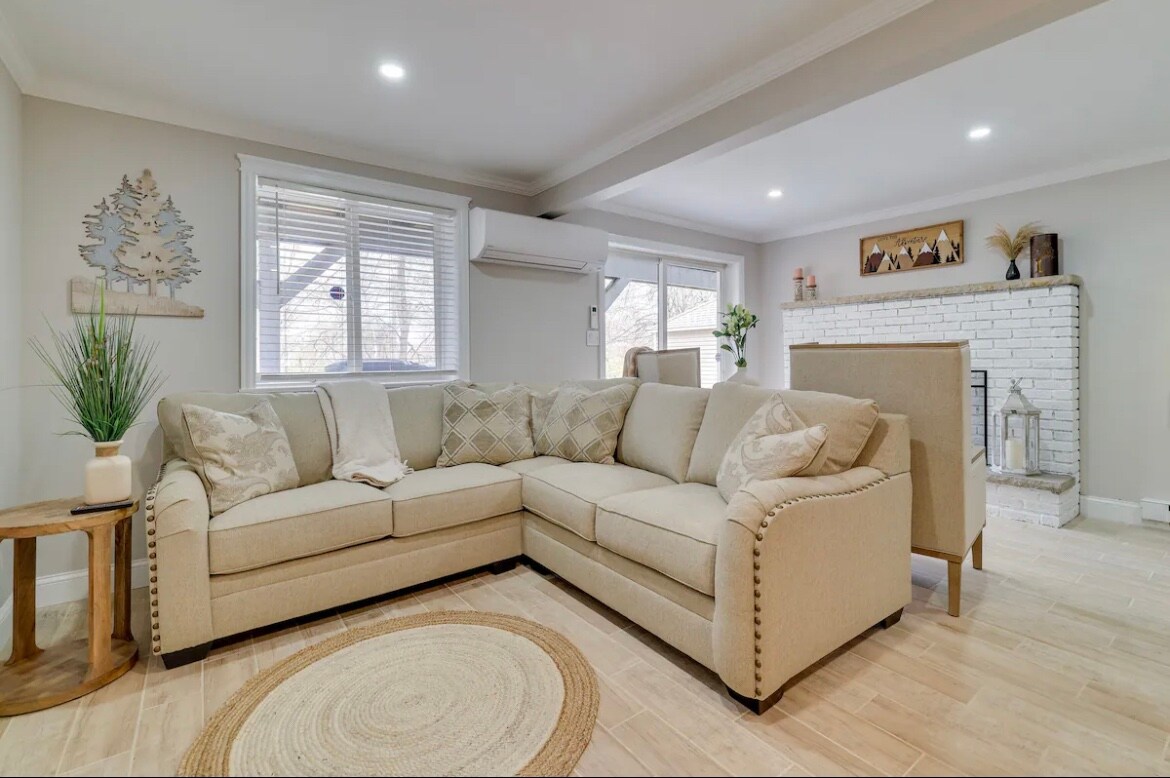 ¡Disfruta de una escapada muy necesaria del bullicio de la ciudad con una estancia en este tranquilo alquiler vacacional de Long Pond! Ideal para una escapada sin importar la temporada, la casa de 3 dormitorios y 2 baños cuenta con una chimenea, una cocina modernizada y una terraza con vistas al bosque. Pasea hasta uno de los lagos de la comunidad, como Deer Lake, Pine Tree Lake y East Emerald Lake, para tomar el sol del verano. O, en invierno, ¡coge tu equipo y lánzate a las pistas en Camelback Ski Resort y Big Boulder Mountain!