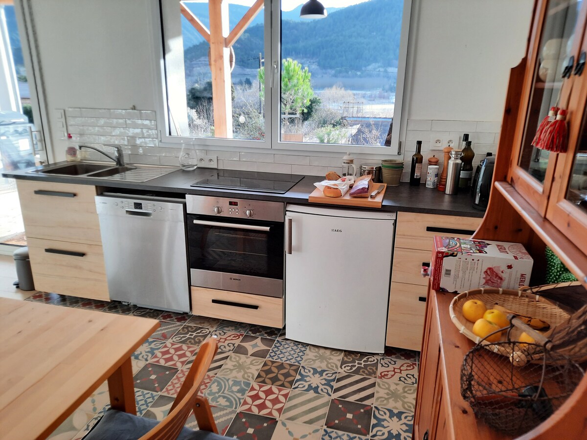 Venga a relajarse en este lugar tranquilo, nuevo y luminoso, de una sola planta, en la planta baja de mi casa: entrada independiente, cancha de petanca. Garaje para bicicletas. La zona de cocina está equipada en el garaje, se puede comer en la habitación de al lado o en la terraza. Estaré encantado de informarle: senderismo, natación (lago, ríos, piscina en julio-agosto), vía ferrata, restaurantes, tiendas, médico. A 10 minutos a pie del centro del pueblo, hay mercado todos los lunes por la mañana.