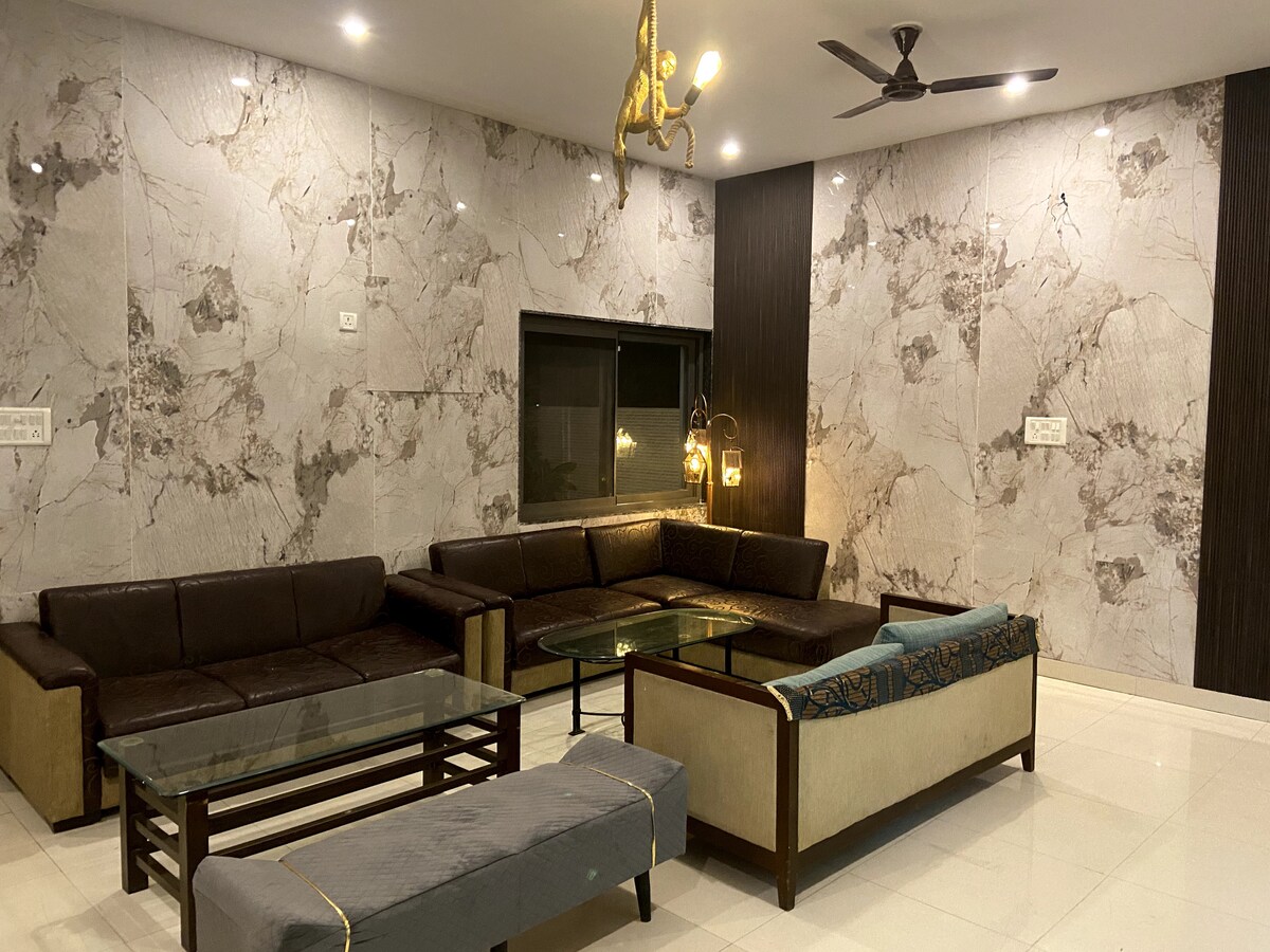 Disfruta de la extensión del cielo despejado en la exuberante vegetación de S. R. FarmStay. Es una ubicación perfecta para cualquier persona que busque una estancia con familiares/amigos o para organizar una fiesta privada o una noche fuera del bullicio de la ciudad. La propiedad se encuentra en una granja orgánica de un acre y cuenta con una piscina cubierta y una cocina pequeña con servicios básicos. La propiedad tiene 4 dormitorios y la enorme área fuera de la casa para organizar cualquier evento social de 50-100 personas. (Los precios variarán para los eventos de anfitriones)