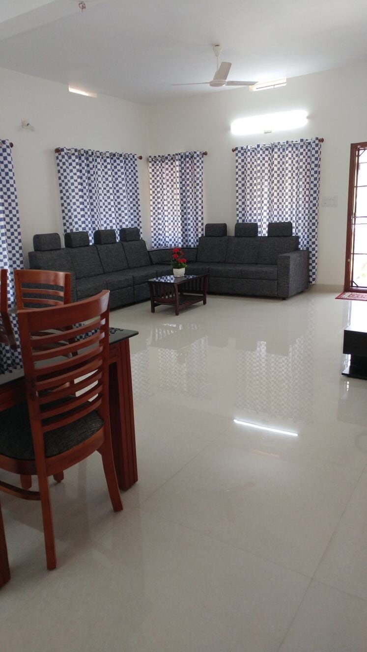 🌿 Esta elegante villa 2BHK totalmente amueblada es una de las dos villas en un complejo cerrado de 40 centavos. 🏡 Convenientemente ubicado cerca de la autopista que conecta el Aeropuerto Internacional de Cochin y Ernakulam. A poca distancia a pie de la estación de metro, que ofrece un acceso rápido a las principales atracciones de la ciudad. 🛏️ LO más destacable: Complejo privado cerrado con amplio espacio de estacionamiento. Ideal para familias que buscan seguridad, comodidad y conveniencia. Nota: Solo aceptamos grupos familiares. Para otros huéspedes, envíanos un mensaje antes de reservar.