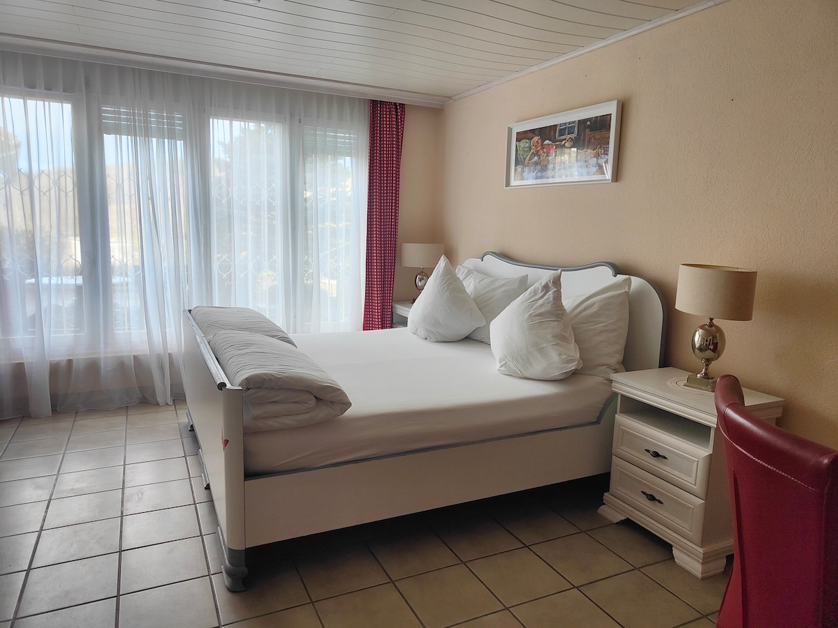 En nuestra casa unifamiliar, alquilamos nuestro moderno estudio. El estudio está ubicado en el primer piso, tiene su propia entrada privada y está completamente separado de nuestra sala de estar, excepto por la escalera compartida. Damos gran valor a la sostenibilidad: nuestra casa se calienta con energía geotérmica y generamos nuestra electricidad con un sistema fotovoltaico solar. Experimenta la sensación especial de comenzar el día con la conciencia tranquila. Justo al lado de la entrada principal, hay un espacio de estacionamiento gratuito disponible.