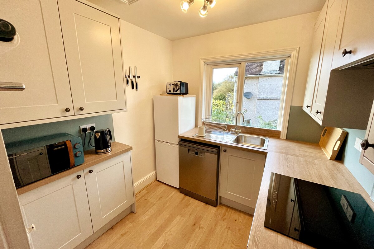 Kick back and relax in this calm, stylish accommodation. Enter through the front door into the open plan spacious, contemporary kitchen, dining and living area. The Kitchen is extremely well equipped and includes Nespresso coffee machine and Dualit appliances. The notably large bedroom has an en-suite wet room and French doors opening onto a veranda and garden with stunning views of the sea and coast. The garden has furniture to relax in whilst enjoying the views. 15 mins walk to beach/town