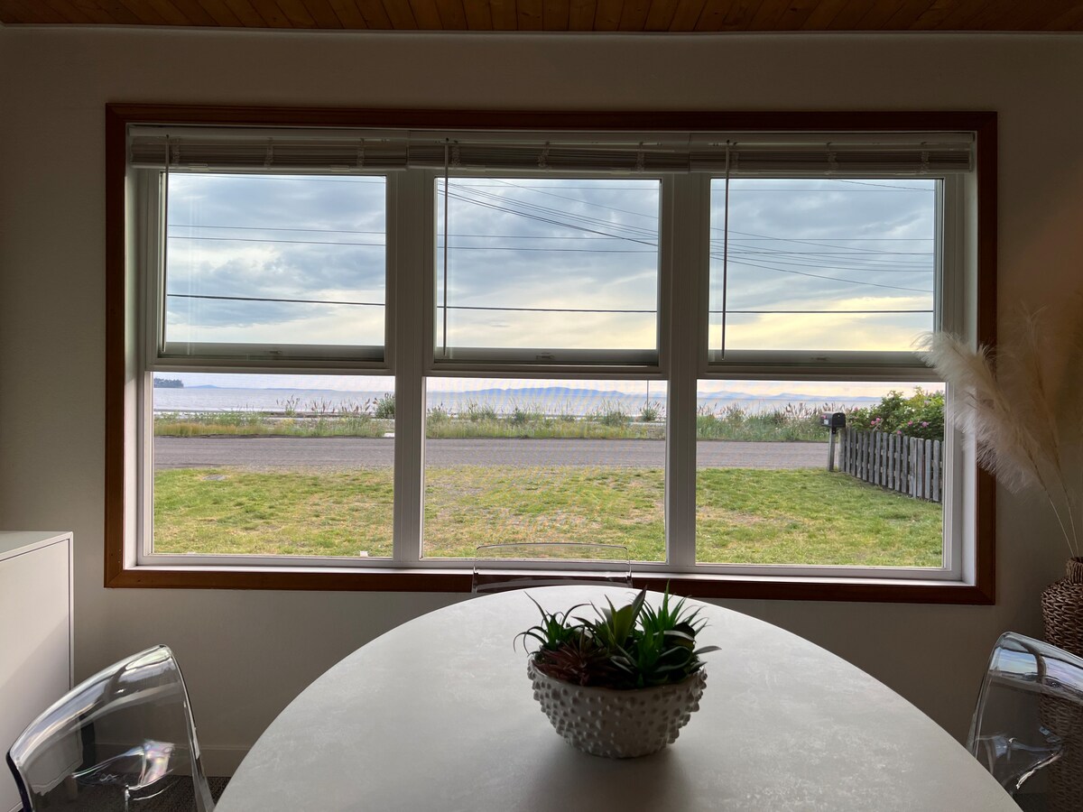 Bienvenido a tu escapada tranquila en Birch Bay. Esta casa de campo está enfrente de la playa y ofrece hermosas vistas al mar. Ofrece una playa privada a pocos pasos con un pozo de fuego y hermosas vistas al agua y a las puestas de sol. Esta casa tiene dos dormitorios y un baño. Es apta para familias y cuenta con un dormitorio principal que incluye una cama tamaño queen, un segundo dormitorio con literas y un sofá cama tamaño queen extraíble en el salón. Trae a la familia para pasar tiempo de calidad juntos en la playa.