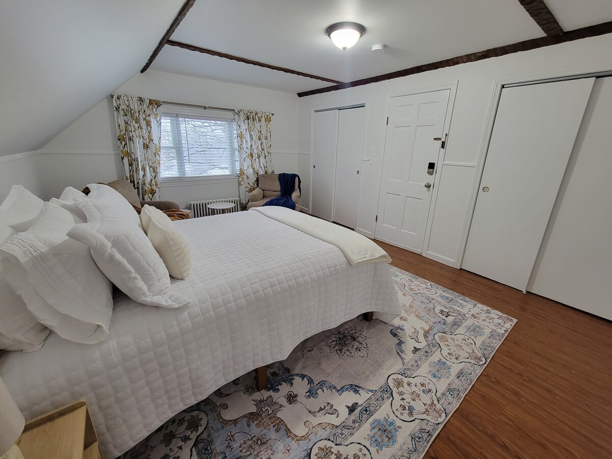 Planta baja. Amplia habitación con una cama tamaño king y una habitación extra con un sofá (cama individual extraíble) y escritorio/tocador. El amplio baño está recién remodelado. La cocina pequeña tiene un fregadero pequeño, nevera y microondas. Se encuentra en un barrio tranquilo a pocos minutos de una vía férrea, la ruta 62, la interestatal 95, la ruta 1 y la ruta 128. Aparcamiento en la calle. Estamos a 5 millas de Salem Mass, a 44 millas de New Hampshire, a 77 millas del canal de Cabo Cod y a 19 millas de Boston. Estamos a 4 millas de la estación de tren de Beverly.
