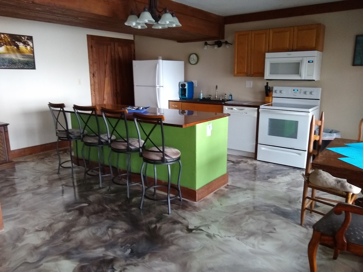 ¿🛌 Necesitas espacio para todo el equipo? ¡Te ofrecemos 4 camas! 📺 Tenemos 2 salas de estar y 2 televisores. ¿Netflix y relax? Más bien Netflix y *gill* porque estamos a solo 1 milla del lago Barkley/KY Lake. 🍔 Nuestra cocina está totalmente equipada, incluso Gordon Ramsay quedaría impresionado. Toma asiento en la *enorme* terraza, donde la piedra negra convertirá tu barbacoa de cero a cien. ¿👶 Viajas con minis? ¡Tenemos una cuna, una trona y juguetes para mantenerlos entretenidos para que nunca quieran irse!