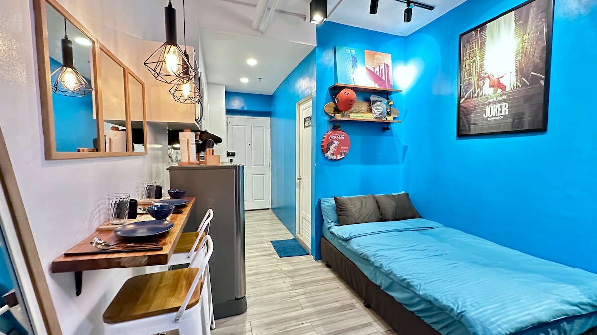 Este apartamento tipo hotel de 38 metros cuadrados cuenta con un diseño industrial que es elegante y acogedor, ubicado en Upperstory, 138NDomingo st Centro Tower, Cubao Quezon City. Este apartamento está a tiro de piedra de restaurantes, cafeterías, tiendas, centros comerciales, etc. También es fácilmente accesible en transporte público, lo que lo convierte en un cómodo punto de partida para explorar la ciudad. Tanto si estás en la ciudad por negocios como por placer, este apartamento de estilo industrial es el lugar perfecto para relajarte y desconectar después de una larga jornada de exploración.