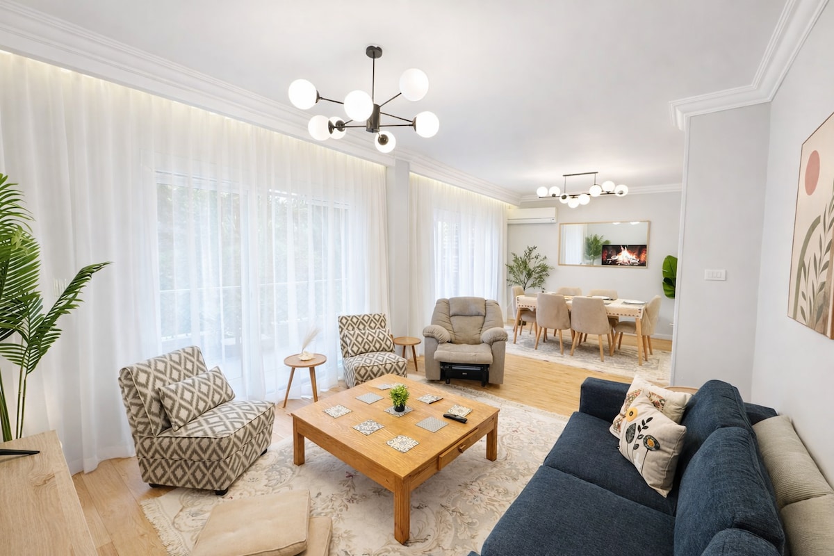 Disfruta de la combinación perfecta de estilo moderno y comodidad en este apartamento de 160 m² recientemente renovado y espacioso. Diseñado pensando en la relajación y la funcionalidad, este alojamiento es ideal para familias, amigos o viajeros de negocios. Las comodidades completas ya están ahí, literalmente te sentirás como en casa. Freidora de aire, microondas, secador de pelo, licuadora, cafetera, lo que sea. El apartamento acaba de ser renovado en junio de 2025, así que disfruta alquilando un apartamento mientras todo está literalmente como nuevo. 😊