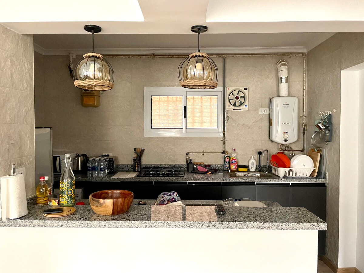 Un lujoso APARTAMENTO ENTERO situado en el CENTRO de todas partes en El Cairo (Maadi ). Las habitaciones están recién amuebladas, tienen aire acondicionado, están bien DISEÑADAS , tienen todos los servicios, están súper LIMPIAS y son TRANQUILAS . El departamento está a diez minutos de la autostrade y A POCA DISTANCIA A PIE de la carretera del río Nilo y de la estación de metro. Cafeterías, restaurantes, supermercados y farmacias están todos cerca. Está a 20 minutos del centro. Calidad estándar del hotel con el hogar como comodidad ofrecida con un PRECIO RAZONABLE.