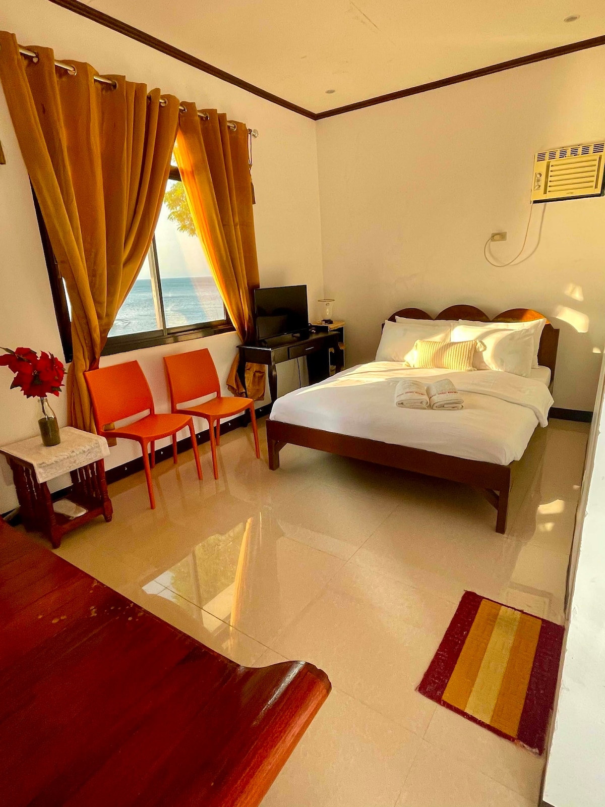 Trae a toda la familia a este gran lugar. A poca distancia a pie de la playa principal. Con internet Starlink de alta velocidad Uso gratuito de utensilios de cocina, estufa de gas y utensilios Videoke Habitación con aire acondicionado Televisión inteligente con Netflix