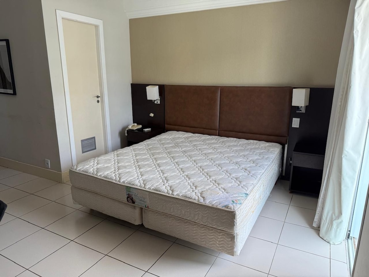 Piso completo con cama tamaño queen y excelente baño, pequeña cocina totalmente equipada, con microondas, cocina eléctrica, licuadora, sandwichera, cafetera, platos, cubiertos y ollas. Ropa de cama y toallas de primera línea, 100% algodón. Edificio con excelente ubicación, conserje las 24 horas y garaje disponible para 34 autos por orden de llegada. Disfruta de una hermosa piscina después de una sauna. ¿Qué tal?En el edificio también hay un culturismo y una lavandería. ¡Estaré encantado de darte la bienvenida!