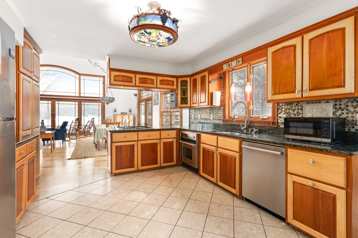 Esta casa frente al lago en el lago Iroquois está cerca de Burlington, 4 áreas de esquí, el lago Champlain y el aeropuerto. Te encantará nuestra casa porque es espaciosa, llena de luz y tiene unas vistas increíbles. Es una casa ejecutiva con suelos de madera, armarios a medida, camas cómodas y una cocina totalmente equipada. Se encuentra al final de una tranquila calle sin salida en este lago de montaña alimentado por manantiales. Nuestro hogar es ideal para parejas, familias numerosas (con hijos), aventureros solitarios y grupos grandes.