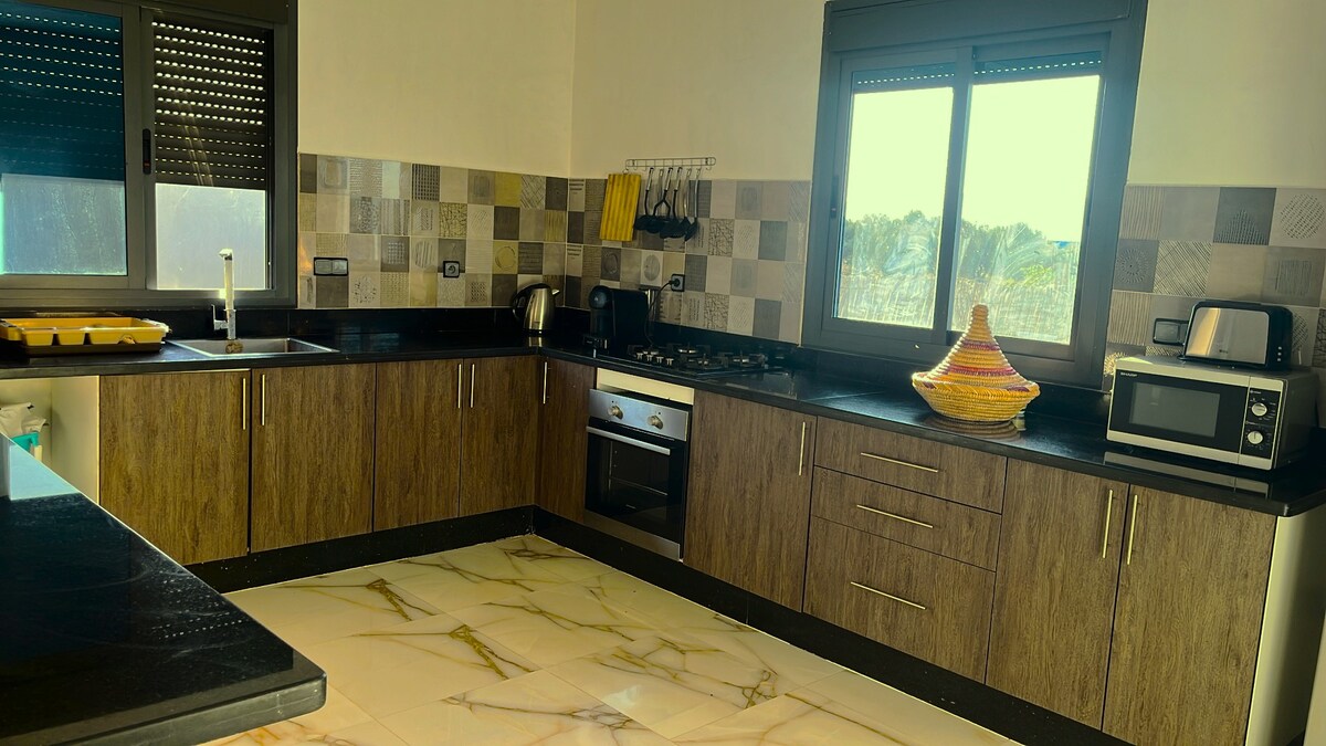 Ubicada en el corazón de una campiña tranquila, a solo 14 km de Marjane de Berkane, esta villa con piscina privada le promete una experiencia única donde se combinan tranquilidad, naturaleza y comodidad. Su piscina privada, protegida de las miradas, constituye un verdadero remanso de relajación para refrescarse con total intimidad. La villa tiene dos dormitorios con armarios espaciosos, un baño moderno y una cocina totalmente equipada.