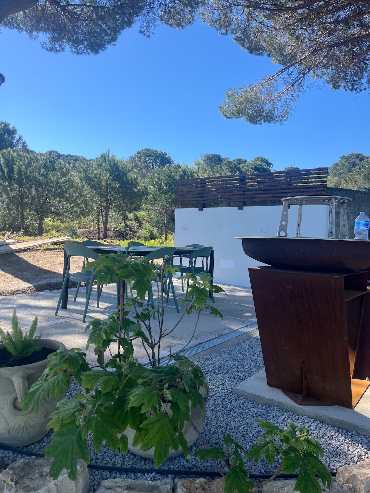 La casa tiene vistas a un amplio espacio abierto con una pequeña cocina al aire libre y un jardín con diferentes tipos de plantas mediterráneas y árboles que rodean la villa. En la planta baja hay una gran cocina y sala de estar con chimenea y sofá cama; arriba hay un dormitorio doble y uno con 2 camas individuales, una antecámara, un balcón, el baño. Todas las habitaciones tienen calefacción, ventanas (con red) y armario. Hay aire acondicionado en la planta baja y en el primer piso.