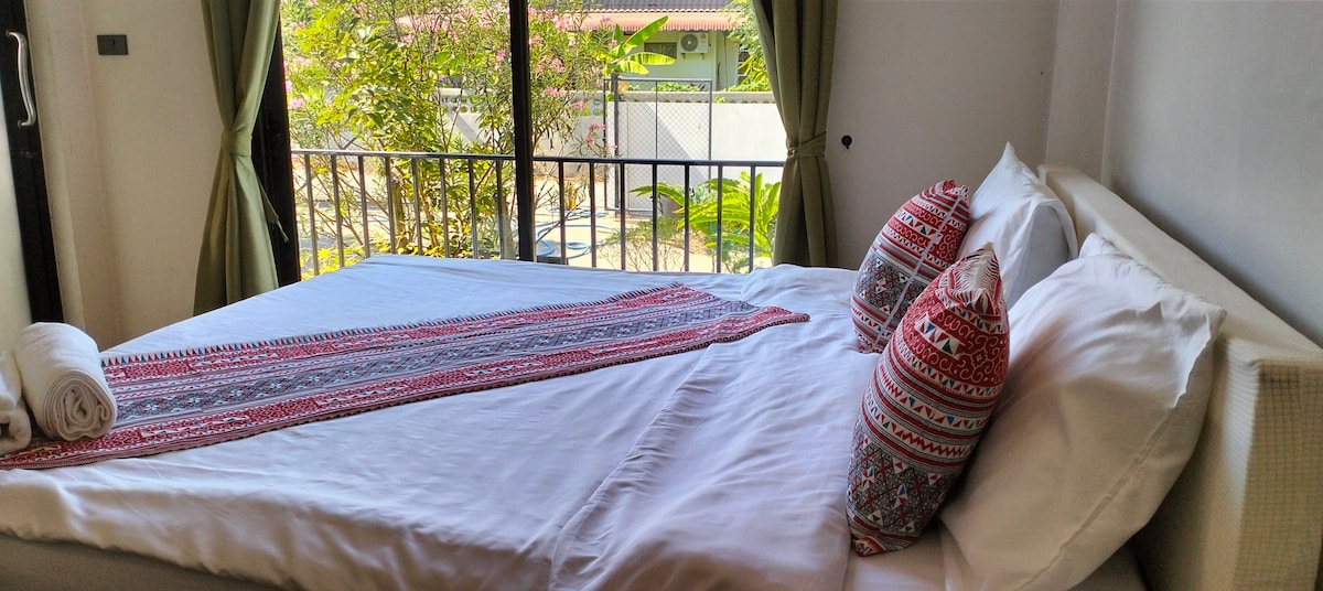 Amplia habitación con cama tamaño king para 2 Aire acondicionado, ducha privada con agua caliente, mininevera, wifi de alta velocidad. Ubicado en las montañas cerca de Mon Jam, en el centro del pueblo, cerca de mercados y 7-Eleven. Estacionamiento incl. Cama doble de 6 pies, capacidad para 2 personas, aire acondicionado, baño privado/agua caliente, mininevera, wifi de alta velocidad, ubicado en las montañas cerca de Mon Cham, en el centro del pueblo, cerca del mercado/7-11, incluido estacionamiento.