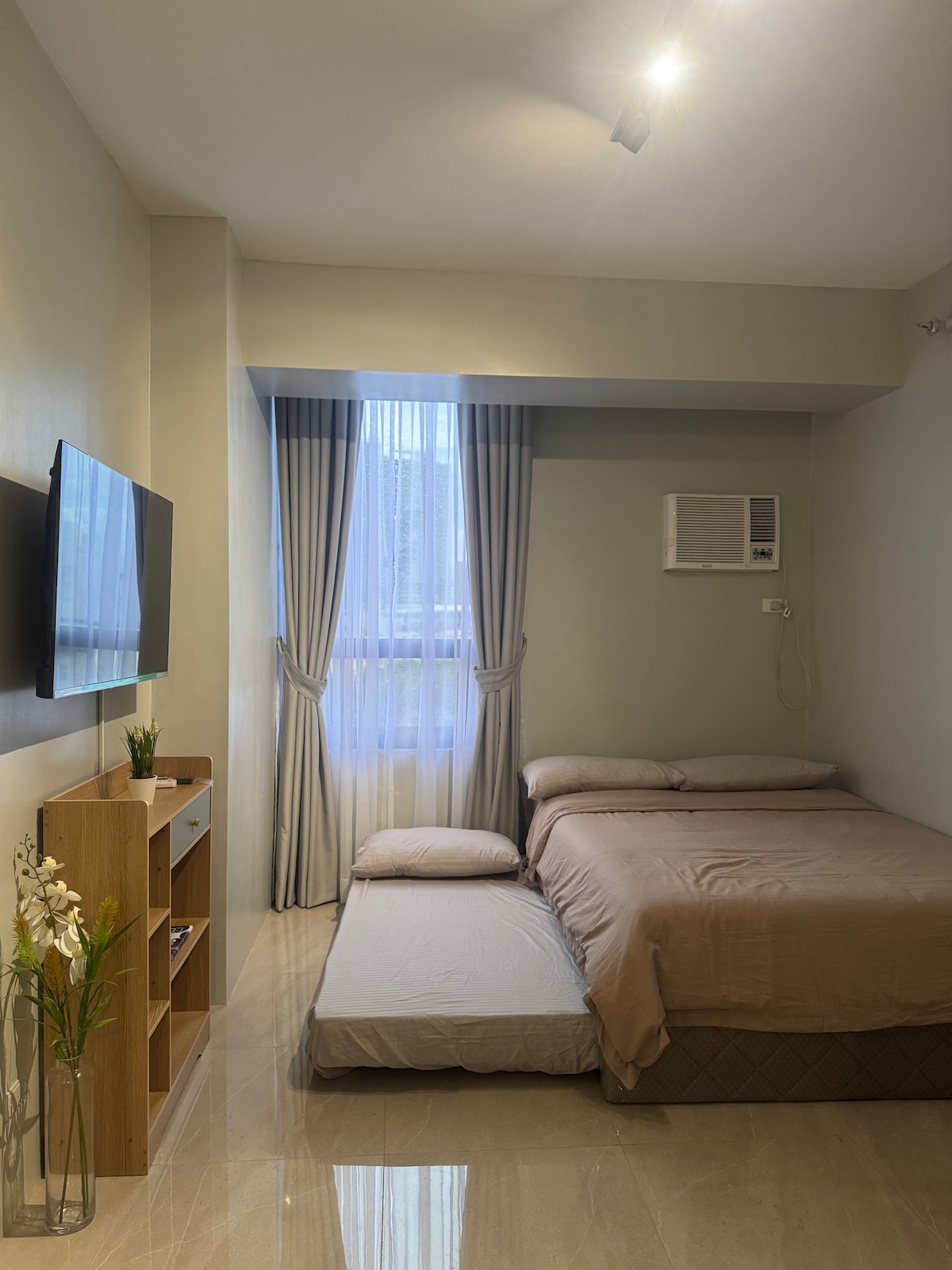 Este estudio ofrece impresionantes vistas a la ciudad con balcón, ideal para disfrutar del café por la mañana o relajarse por la noche. Estamos a 5 minutos a pie del Waterfront Hotel y a solo 8-10 minutos del IT Park, con cómodo acceso al transporte. Descubre las principales atracciones como el Templo Taoísta, el Templo de Leah y el Parque Empresarial de Cebú a 15 minutos, o dirígete a las playas de Mactan a 30 minutos. Nuestro estudio bien equipado ofrece un ambiente acogedor para garantizar una estancia cómoda.
