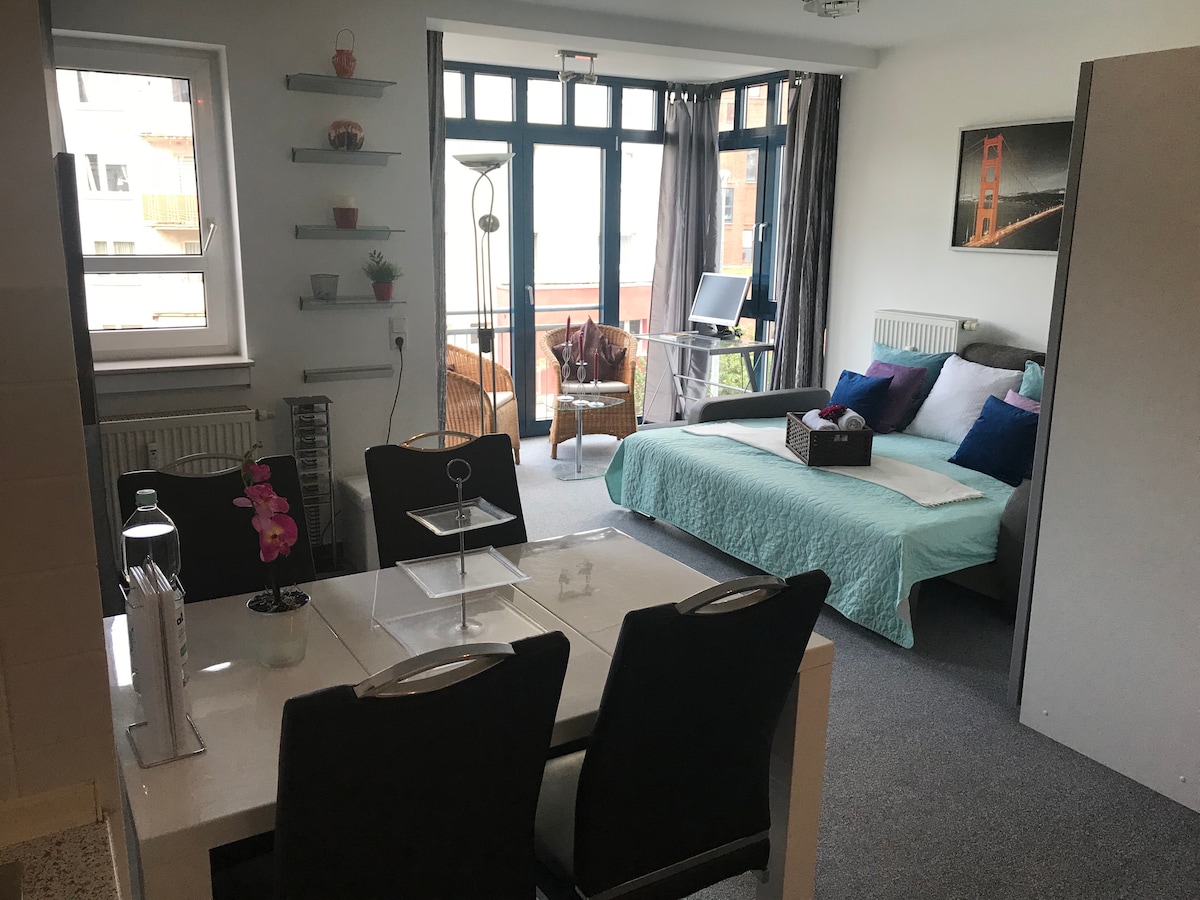 Enjoy a stylish experience at this centrally-located property. Loft like design, fully equipped kitchen, cozy stylish bedroom with a comfortable queen sized bed (river view from the window), fast speed Wi-Fi (well adapted for work from home). Free parking on all the streets around the building. Direct public transport connection to the airport, Messe (exhibition center) and central station (Hbf). Sleeps up to 3 people (there is an additional payment if you want to use the sofa for sleeping)
