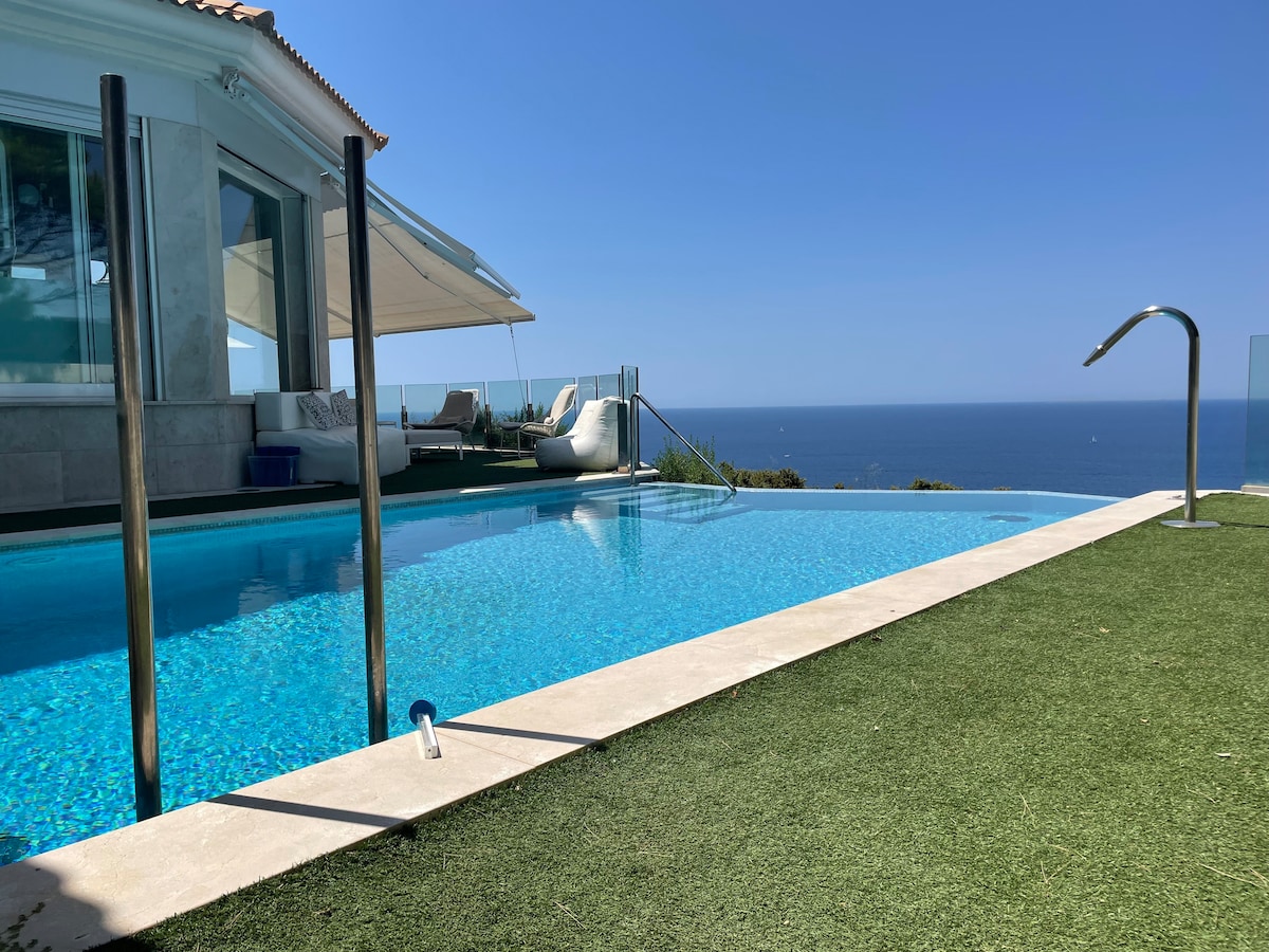 Lujosa villa de estilo mediterráneo en primera línea de la Bahía de Palma. Detente cada día un momento para contemplar las mejores puestas de sol de Mallorca, y nuestra terraza te hará sentir como si estuvieras navegando por las aguas cristalinas del Mediterráneo. Disfruta de una verdadera experiencia piscina exterior infinita.