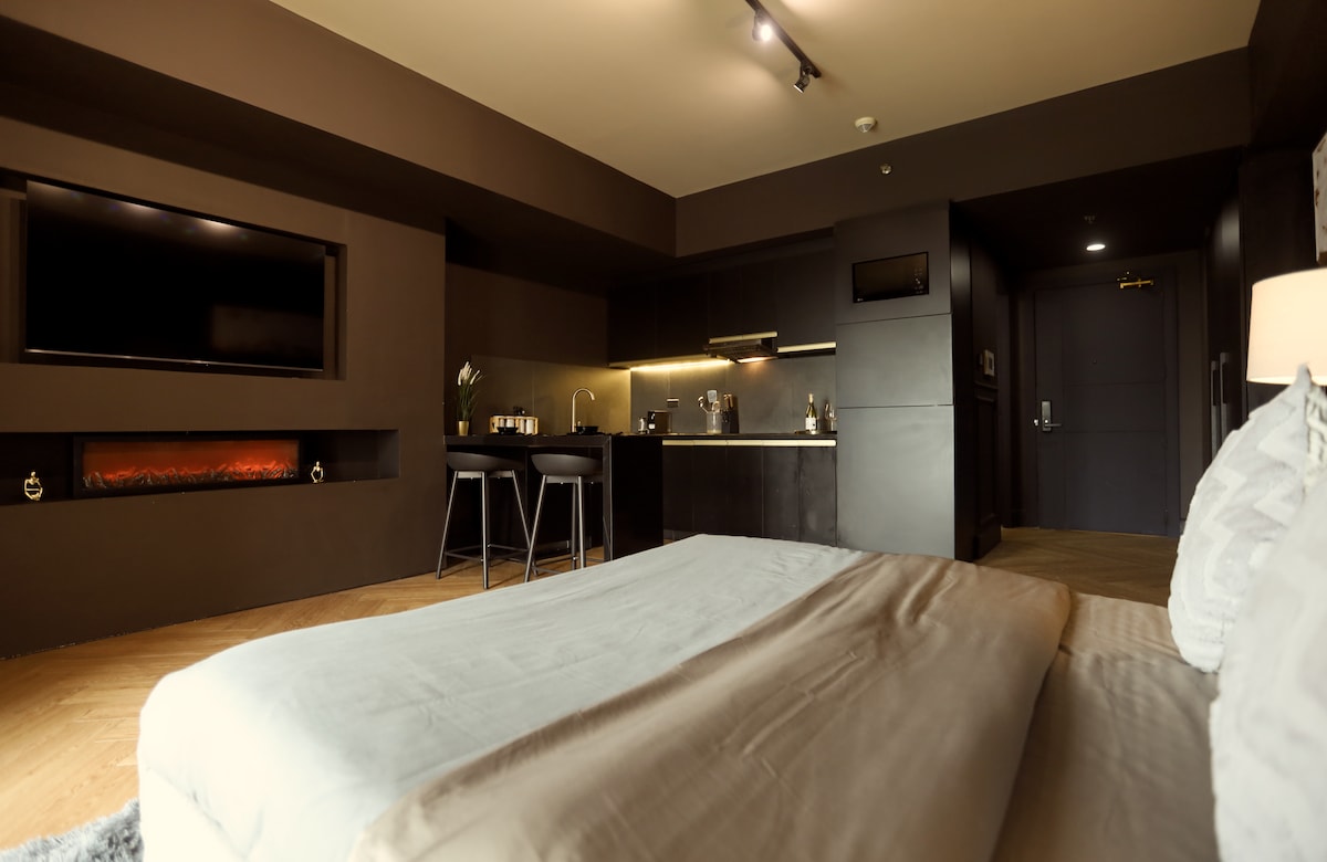 Suite 1BR lista para cine con vista a la ciudad y estacionamiento gratuito