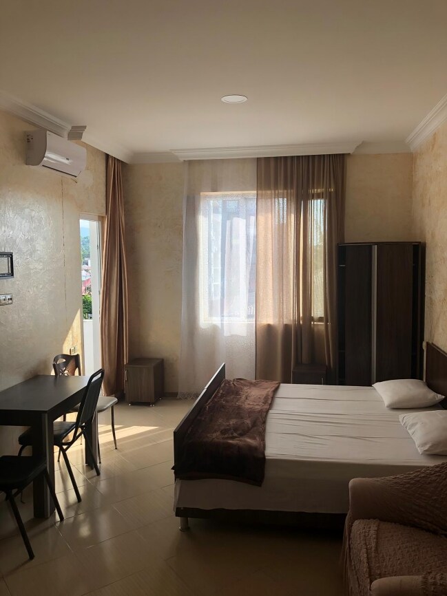 Estudio en Chakvi" es un apartamento ubicado en el asentamiento de Chakvi, a solo 1 km de la playa. Entre los servicios, hay un estacionamiento con videovigilancia. Las ventanas ofrecen una vista del jardín. Los huéspedes tienen a su disposición un dormitorio, una sala de estar, una cocina totalmente equipada con horno y hervidor de agua, así como un baño con ducha y artículos de tocador. Se proporcionan toallas y ropa de cama a los huéspedes. Los huéspedes del “Estudio en Chakvi” reciben desayuno por 18 lari por persona.
