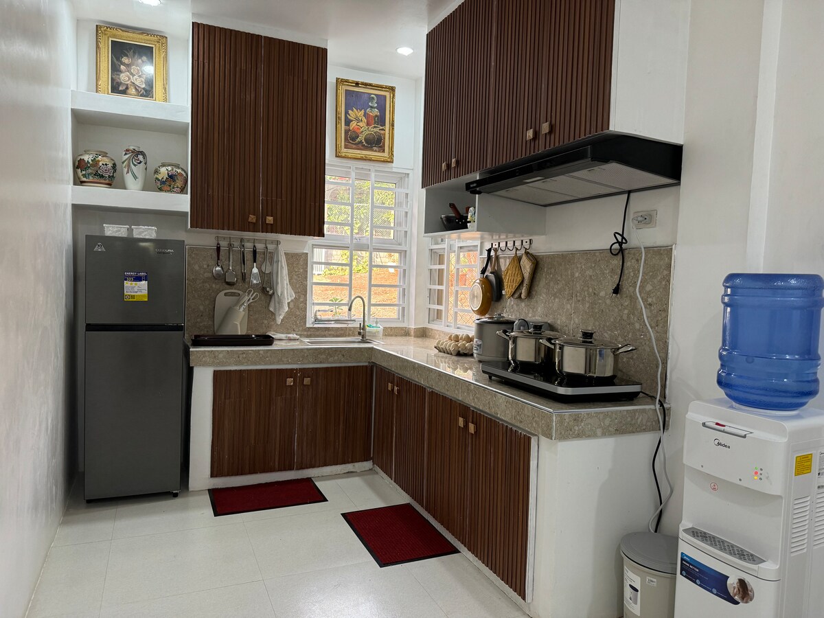 Your cozy home conveniently close to the city center, yet tucked away in a quiet and safe neighborhood—less than 1 km from Capitol Grounds ✨ 🛏 2 air-conditioned BR Sleeps up to 7 guests (3 queen-size, 1 single) 🚿 2 Bathroom|Hot and Cold 🖥 Dedicated workspace + Fast Fiber Wi-Fi 🍳 Fully equipped indoor + outdoor kitchen - Ref, rice cooker, water heater, microwave and cutlery 💧 Backup water tank 🔋 Portable backup power 🚗 Gated parking