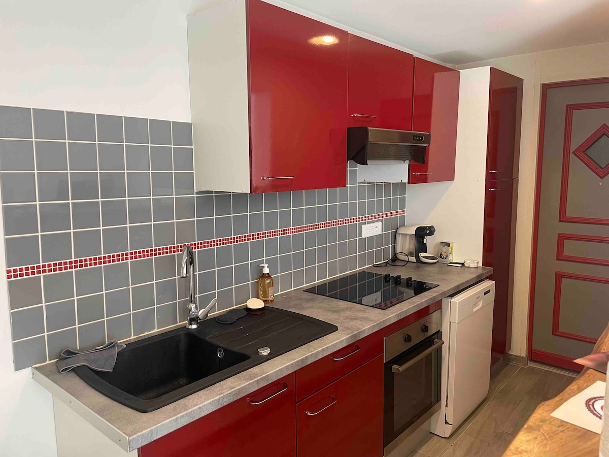 Bonito dúplex de piedra vista con balcón de entramado de madera, ideal para relajarse en la tranquilidad. En el corazón de una propiedad arbolada de 5000 m2, cerca de todos los comercios y servicios. Este nido acogedor está compuesto por una habitación de arriba con un balcón donde se puede almorzar y un baño con ducha con inodoro En la planta baja hay una sala de estar con un sofá cama y una zona de comedor con una cocina equipada. wifi Estacionamiento gratuito en el lugar Bicicletas disponibles SIN FIESTA NO HAY ANIMALES