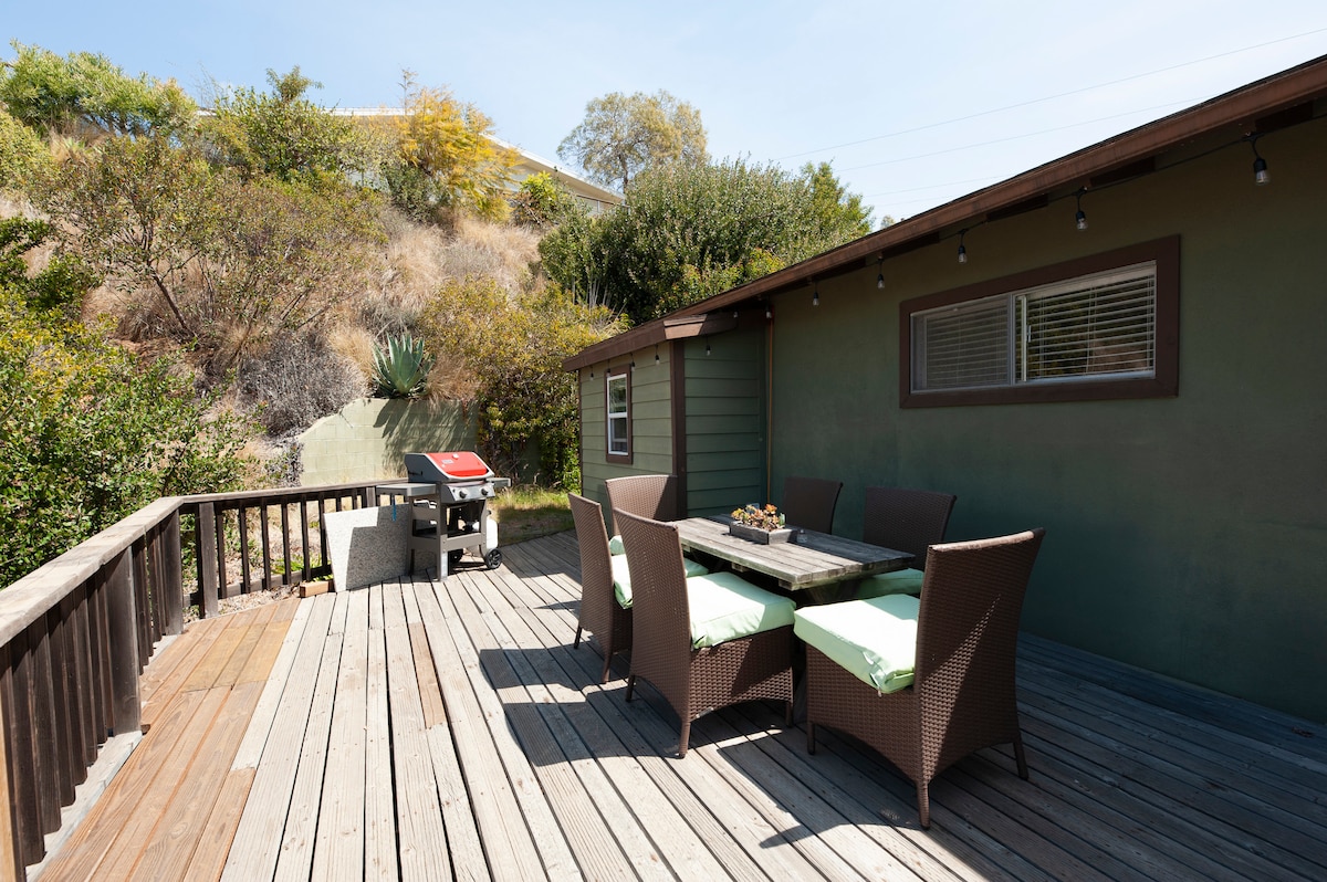 Ubicada en Mid-Malibu, (no cerca de la zona de incendios) a 5 minutos en coche por el cañón desde Malibu Seafood Cafe, Solstice Canyon Trails y Corral Beach, esta casa de huéspedes de 1 dormitorio está rodeada de las montañas de Santa Mónica, con vistas a Los Ángeles y vistas panorámicas al mar. Disfruta de un sendero justo en la propiedad con vistas a las islas Catalina, practica surf en la playa de abajo, recorre senderos cercanos o simplemente relájate en el patio trasero con vistas a Pt Dume. Privado y romántico.